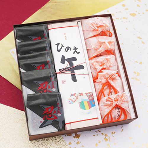 迎春菓詰め合わせ 忍5個干支菓ひのと午1棹珠の栗5個