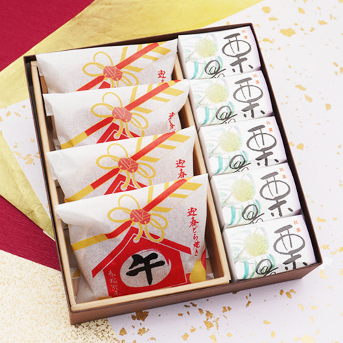 迎春菓詰め合わせ 迎春どら焼き午4個栗最中5個