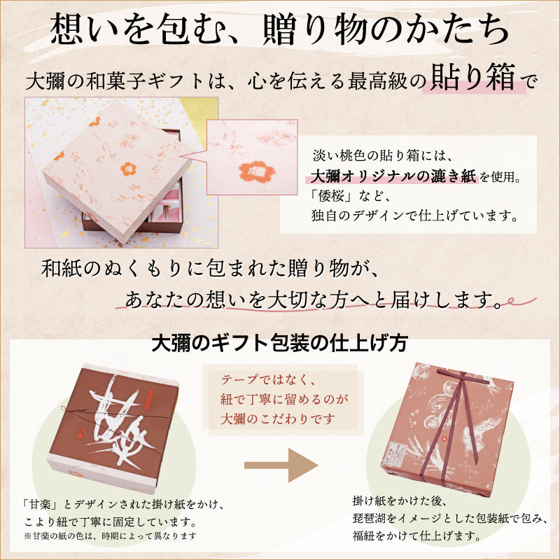 法事の御供、お祝い事、内祝い、お見舞い、手土産や大切な方へのプレゼントなどにご利用下さい。熨斗やオリジナルメッセージカードもお付けします。